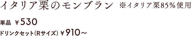 イタリア産の栗を85%使用したモンブラン。中にはマロンホイップを組み合わせた濃厚感のあるケーキです。